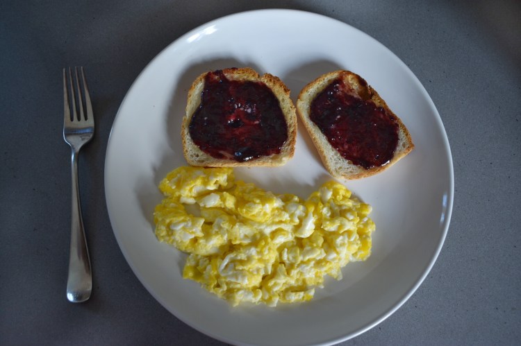 Monday: Started off the week with a classic for me! Chances are 9/10 days I eat eggs for breakfast, and scrambled are definitely my favourite. On the side I had some Gluten Free toast (Trader Joe’s GF White Bread) with marionberry jam. Jam isn’t usual for me, but it always feels so summer-y for me, and so so delicious!