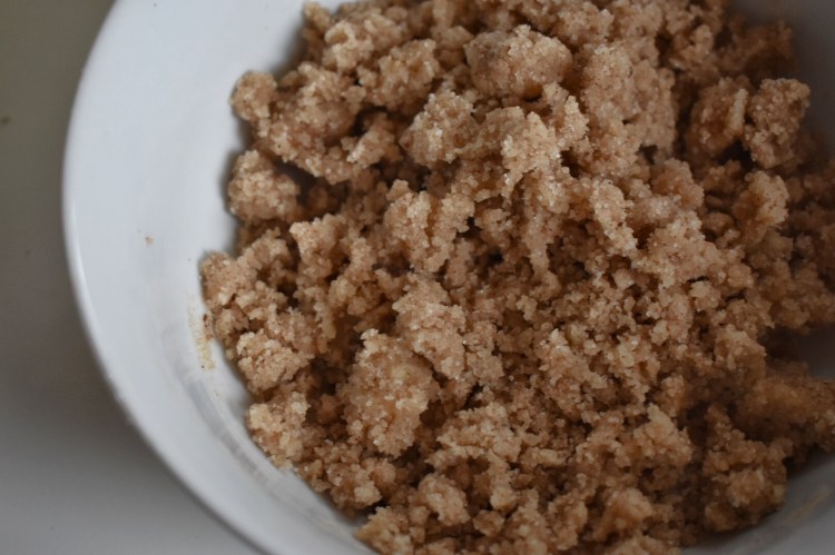 3) In a smaller bowl combine the topping ingredients together, I would recommend using your hands for this step.