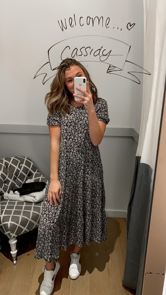 This final look today was on the dressier side. I wasn’t sure about this dress when I saw it on the hanger but fell in love when I tried it on. If it wasn’t so cold where I live already I definitely would have brought this one home with me too. I love the length of it and think that its perfect to dress down with some sneaks like I did her, but could absolutely be dressed up with a pair of heels too.