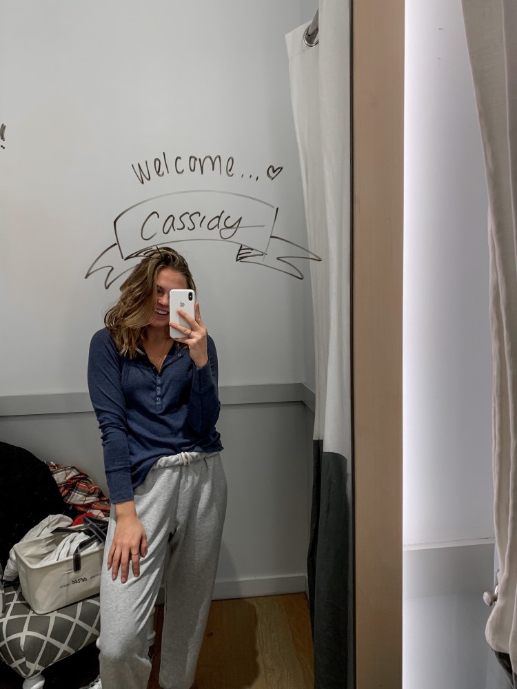 I also tried on (the softest sweats EVER) in a size medium and while they definitely were cozy, I would have sized down if I was bringing them home with me.
