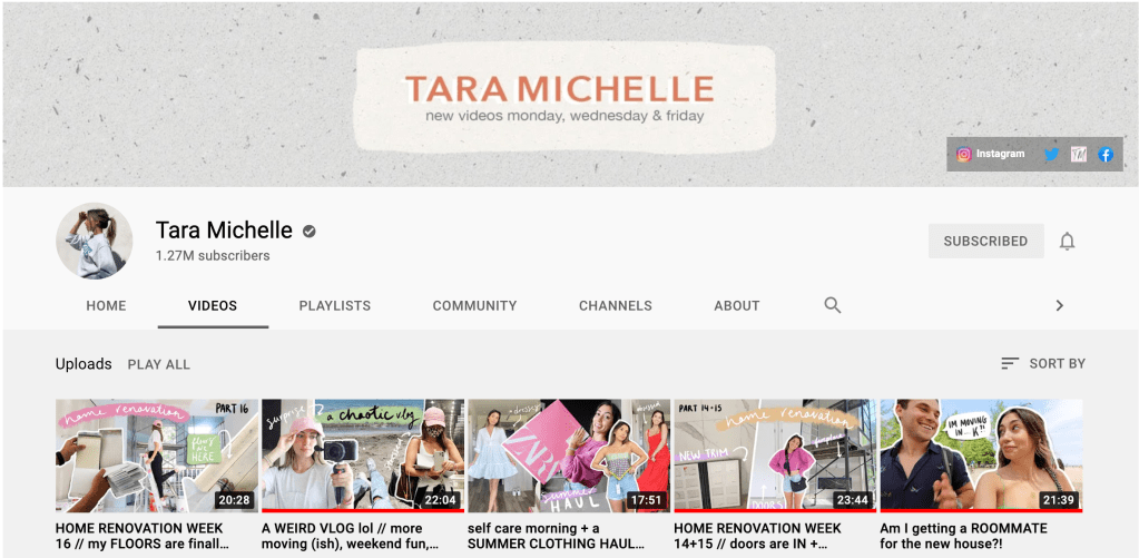 Tara Michelle Youtube Channel – I love following fellow Canadian gals and Tara is currently in the middle of a home renovation which has been so fun to follow along with.