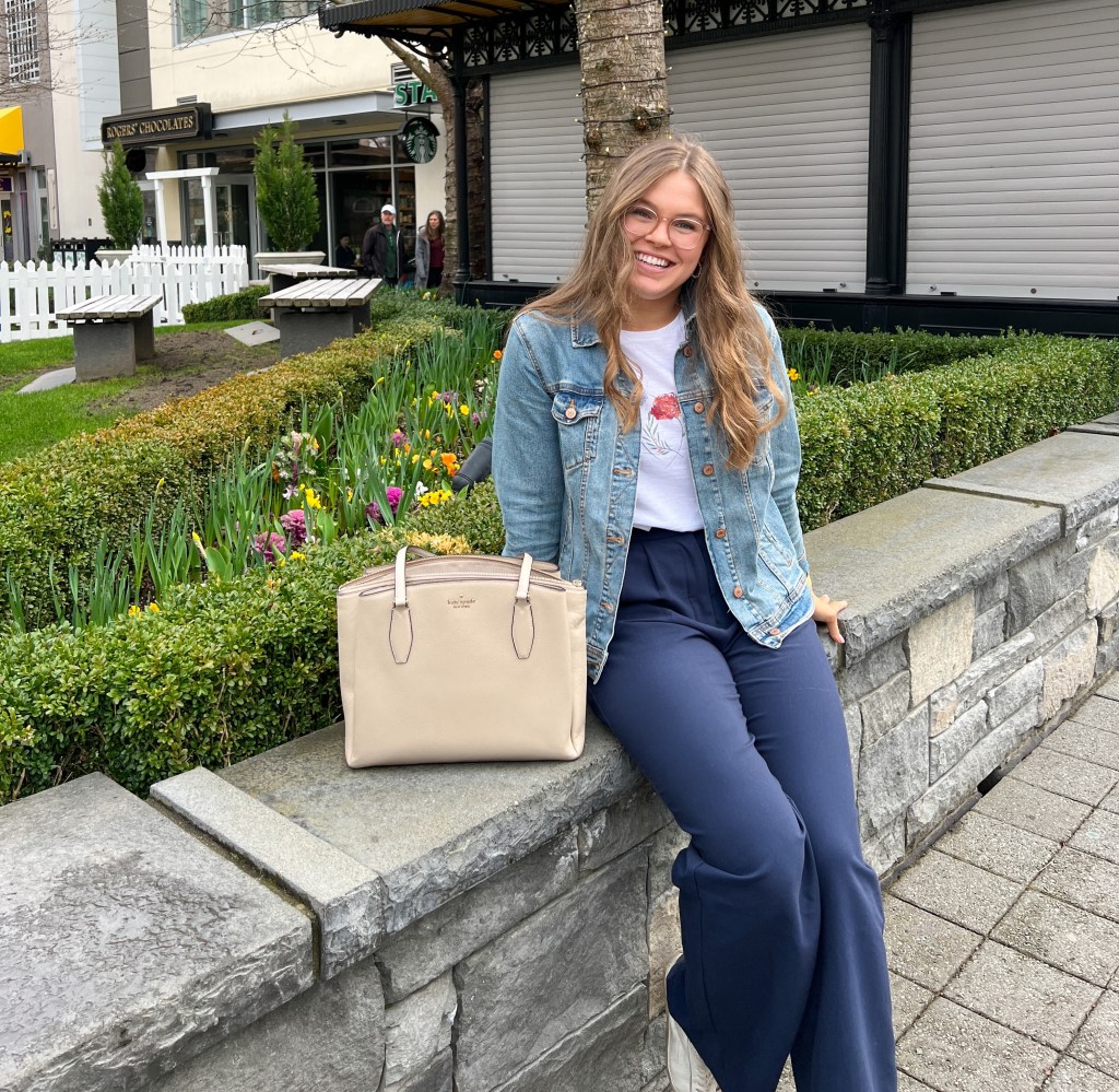 First, let’s get into the purse details. If you know me, you don’t have to read any further to know that it is Kate Spade. This particular style is the Monet Large Triple Compartment Tote in warm beige. While the exact style isn’t available still, I have linked some comparable bags here.