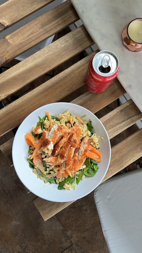 Chicken Salad: spinach, brown rice, shredded carrot & breaded chicken. I actually made the chicken from scratch this day but it would be really easy to buy store bought chicken and airfry (this is what I usually do but I was out).